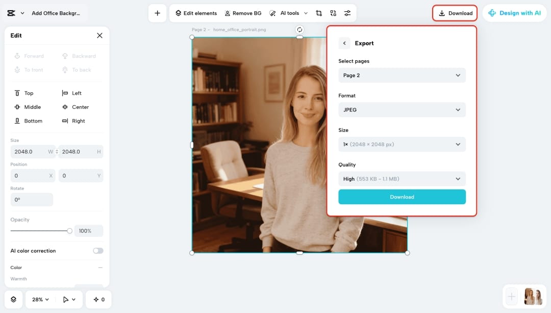 Built-In Editing Tools: Enables quick refinements like filters, text, and background adjustments.